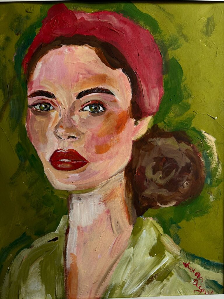 Red bandana in hair
